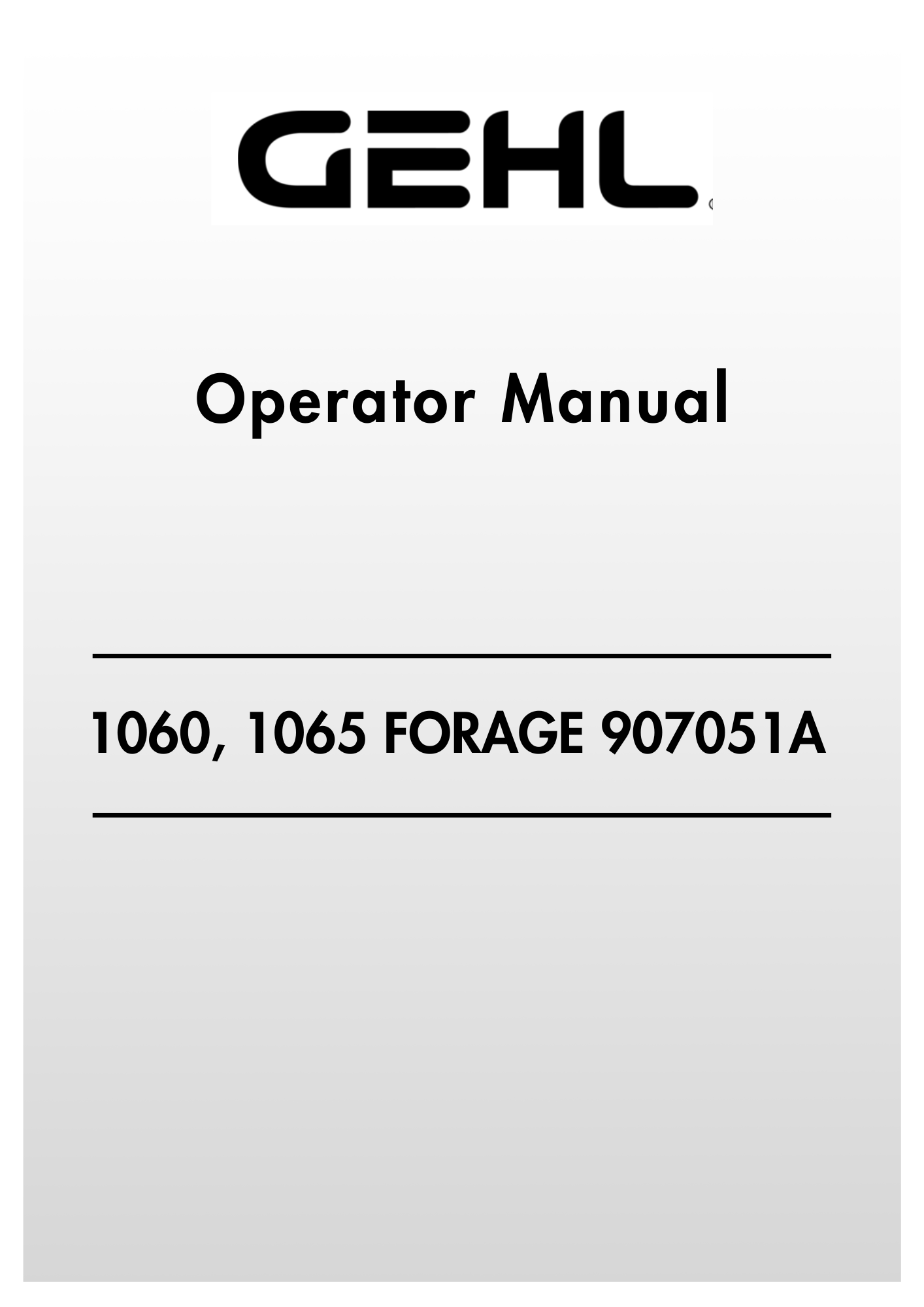 GEHL 1060, 1065 Forage Harvester 907051A Operator Manual