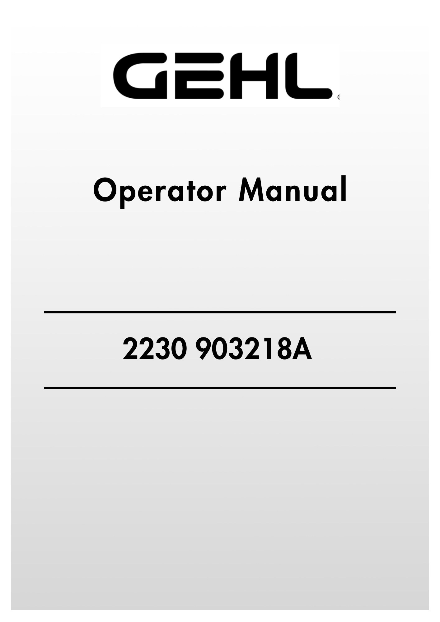 GEHL 2230 903218A Operator Manual