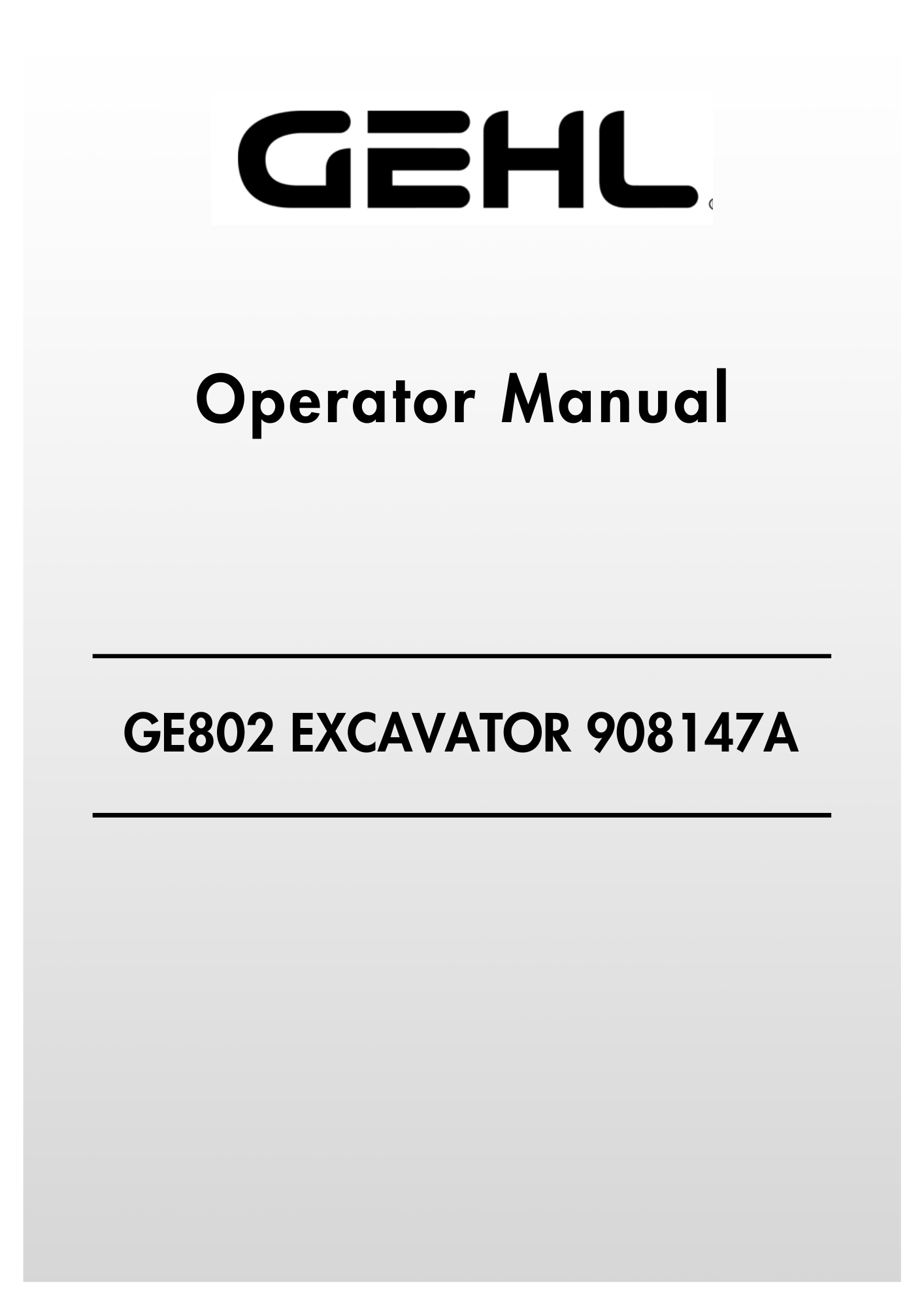 Download GEHL GE802 Crawler Excavator 908147A Operator Manual - PDF File