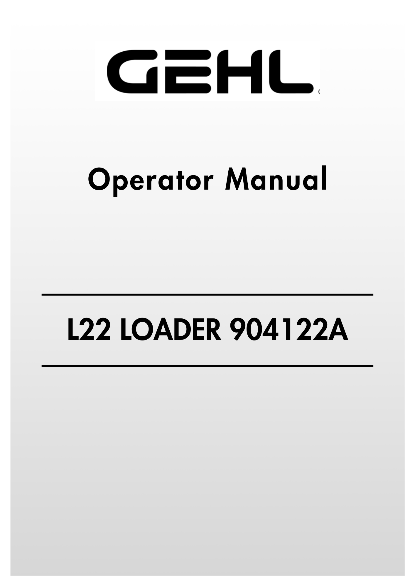 GEHL L22 Manure Loader 904122A Operator Manual