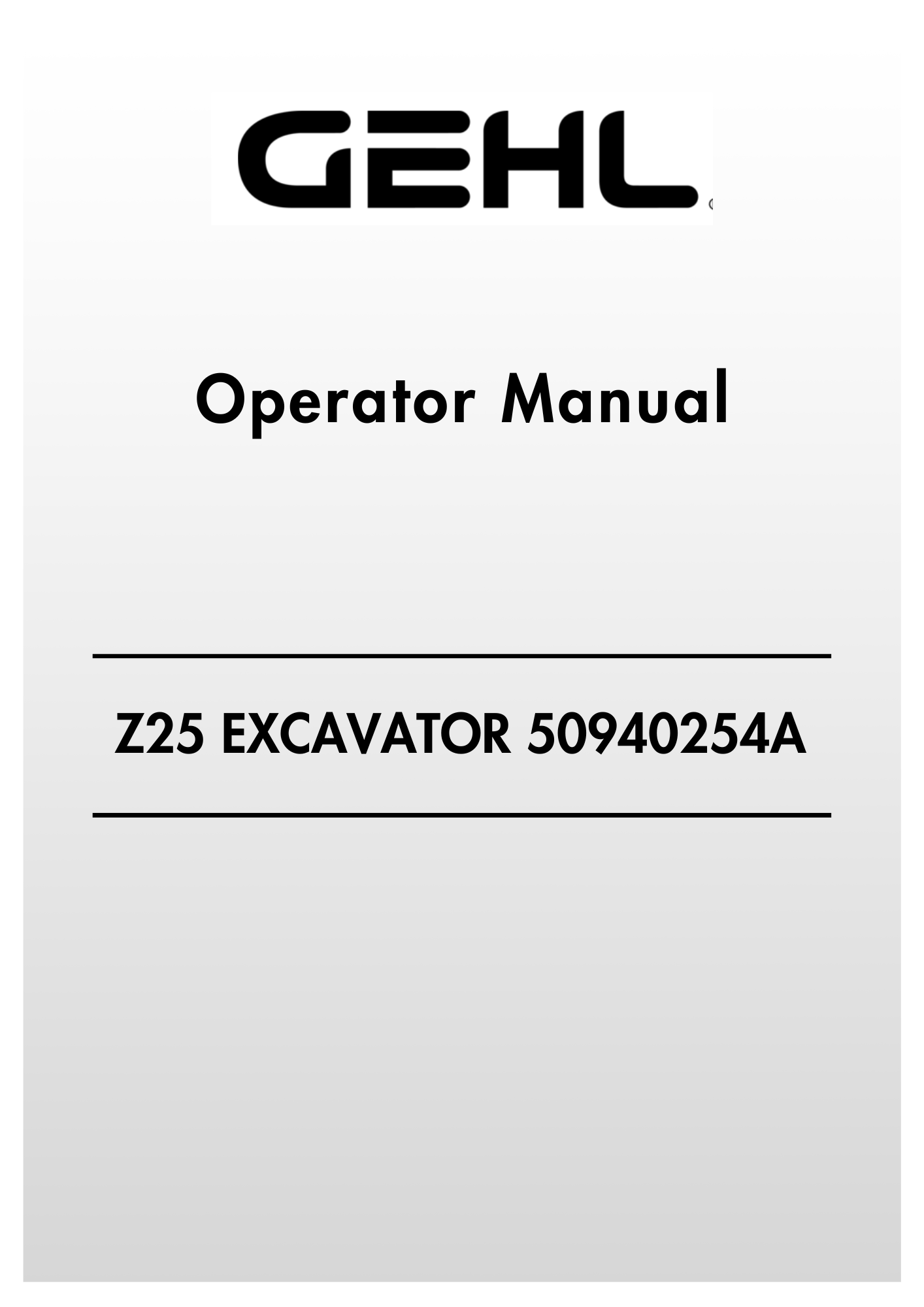 GEHL Z25 Crawler Excavator 50940254A Operator Manual