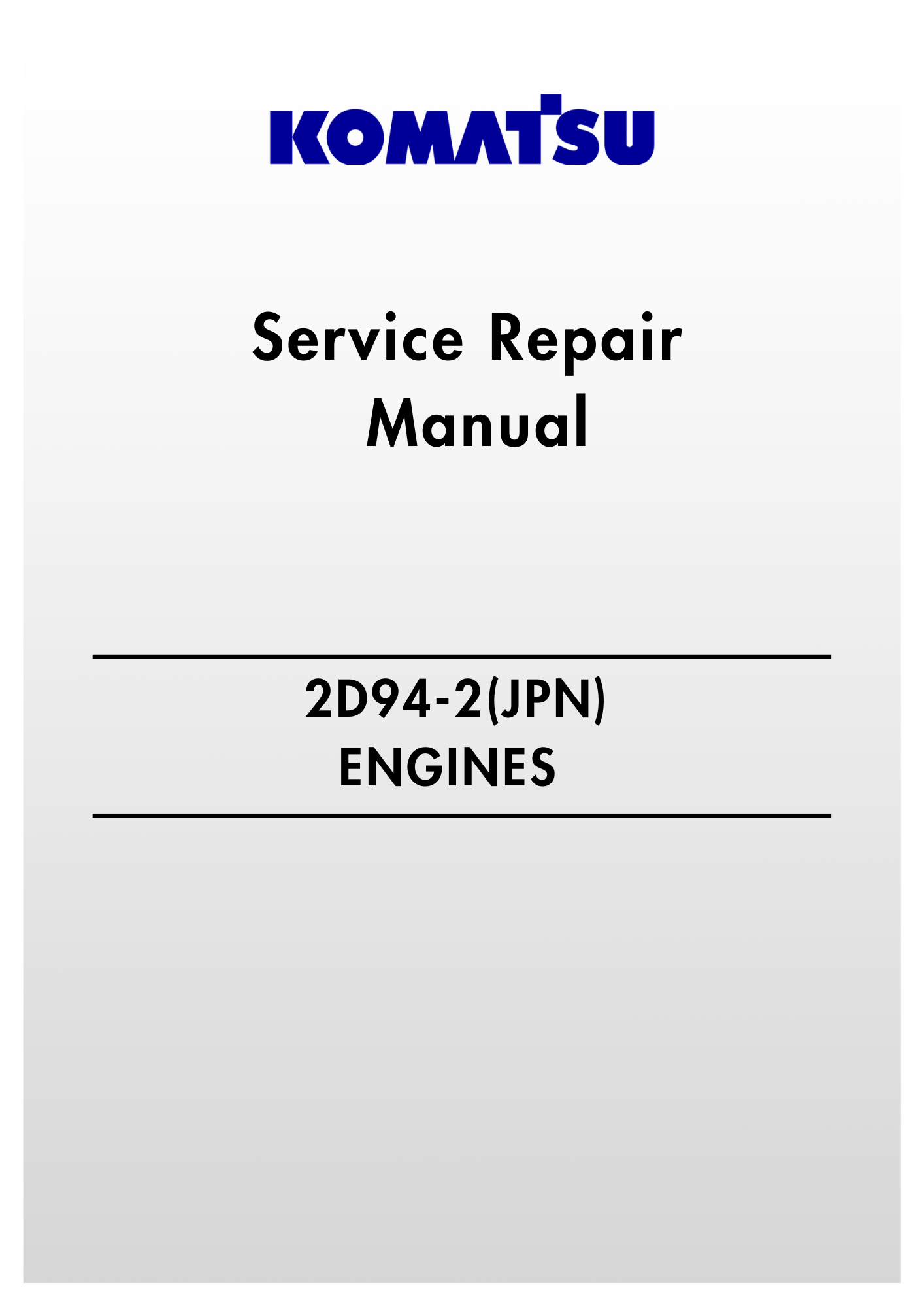 Unlock the full potential of your Komatsu 2D94-2(JPN) engine with our comprehensive Service Repair Manual. This essential guide provides detailed instructions, diagrams, and troubleshooting tips to ensure efficient maintenance and repair. Designed for both professionals and DIY enthusiasts, it empowers you to tackle any engine issue with confidence, saving you time and money. Invest in your equipment's longevity and performance—get your Service Repair Manual today and keep your engine running smoothly.
