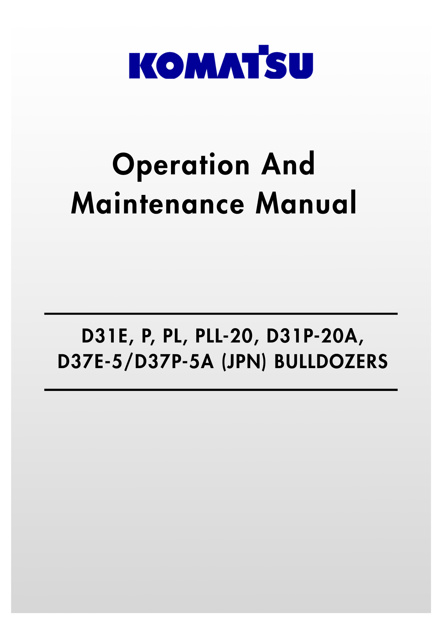 Komatsu D31E, P, PL, PLL-20, D31P-20A, D37E-5/D37P-5A (JPN) Bulldozers Operation And Maintenance Manual