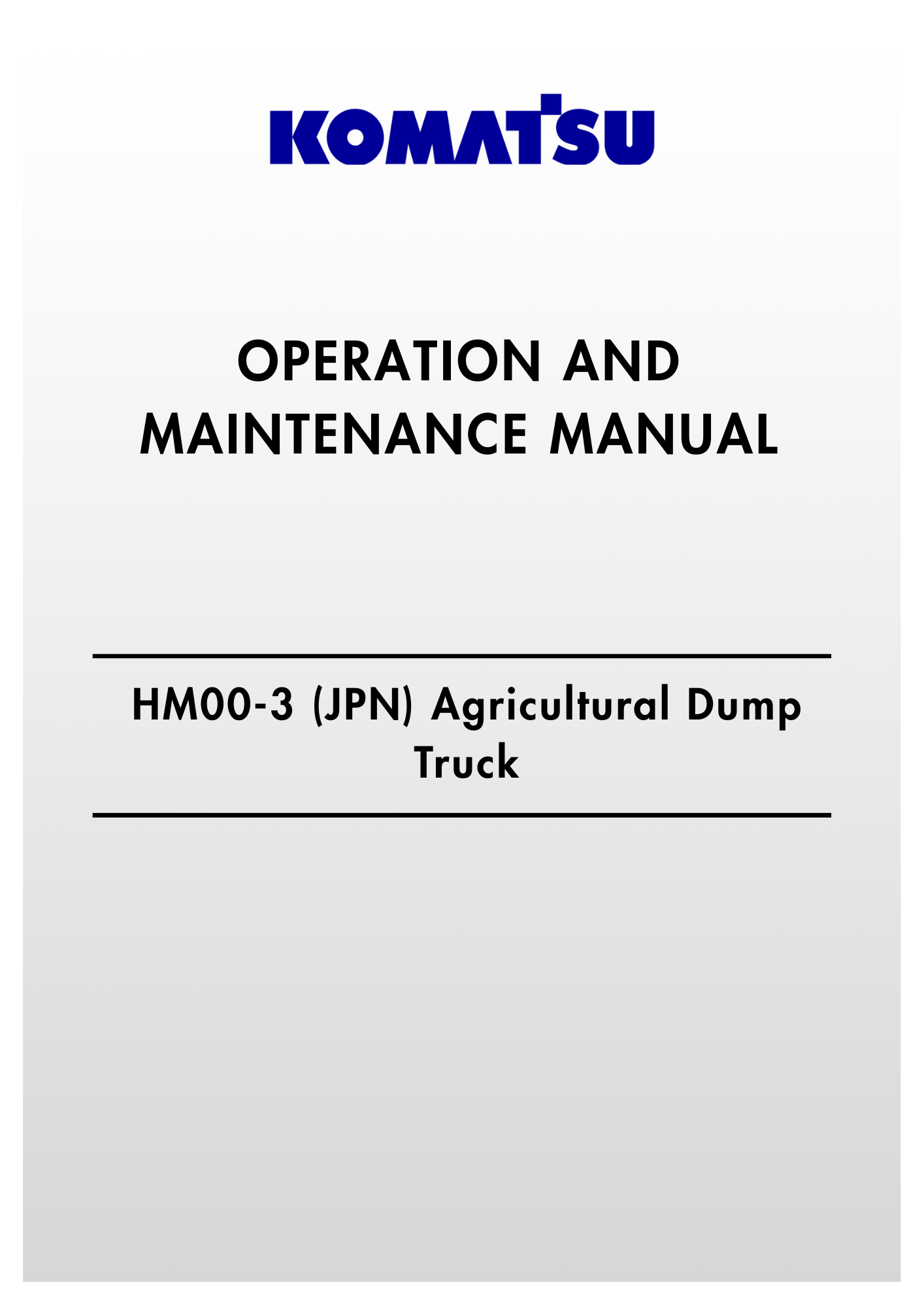 Komatsu HM00-3 (JPN) Agricultural Dump Truck Operation And Maintenance Manual S/n 3376-UP
