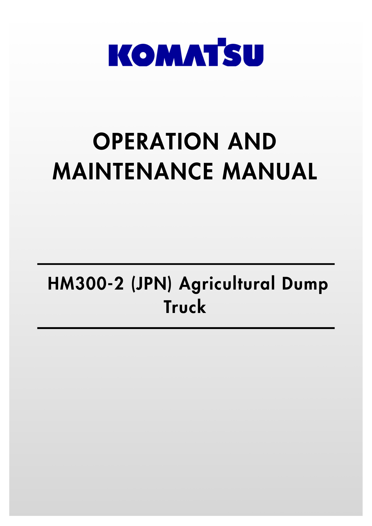 Komatsu HM300-2 (JPN) Agricultural Dump Truck Operation And Maintenance Manual