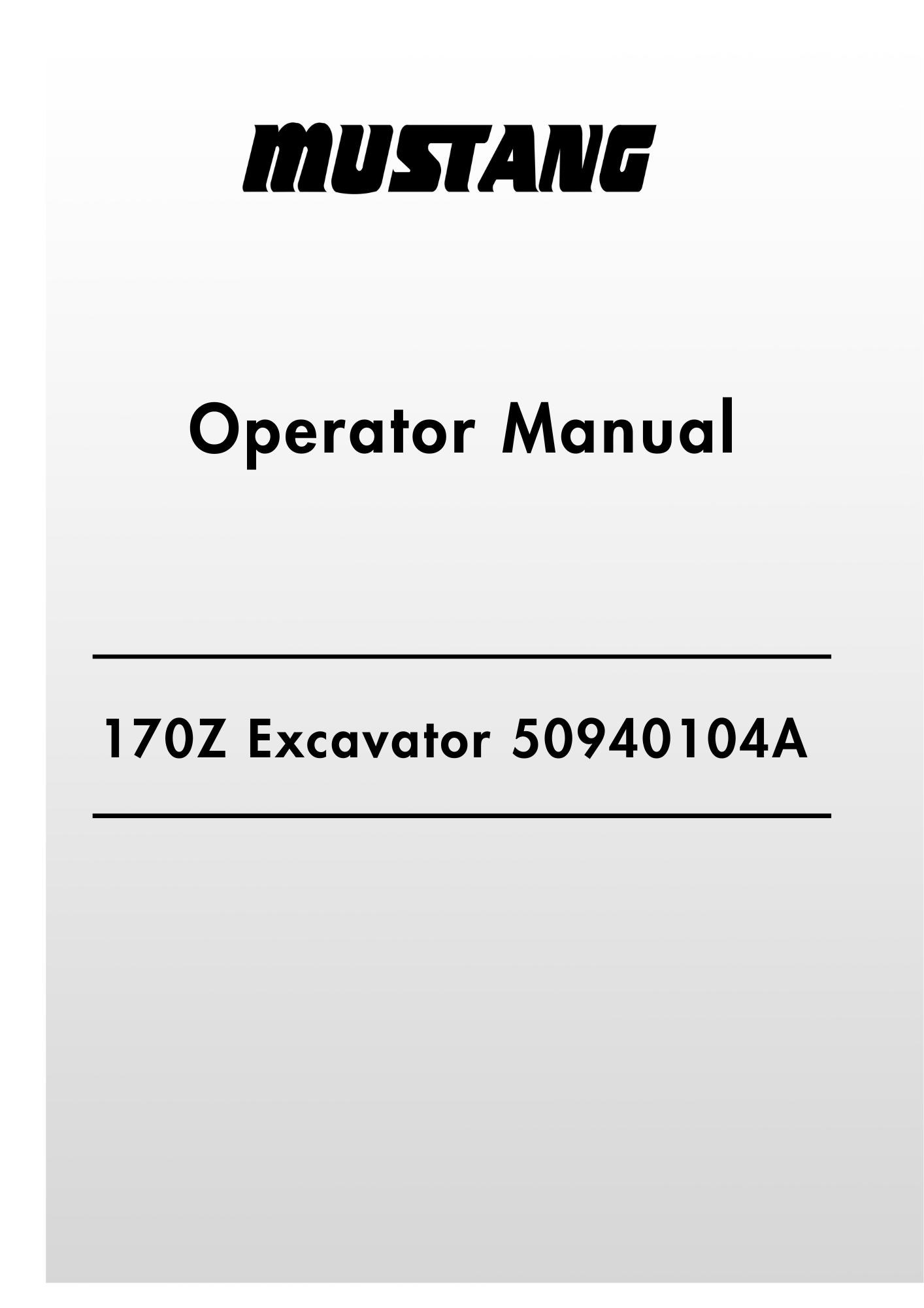 Download MUSTANG 170Z Excavator 50940104A Operator Manual - PDF File