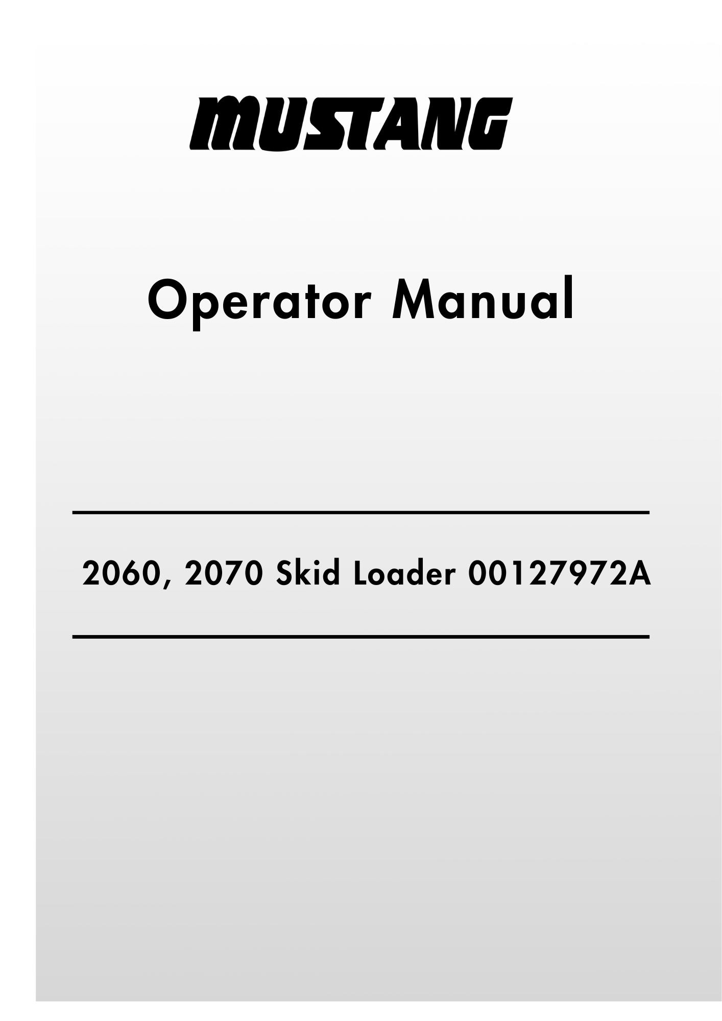 MUSTANG 2060, 2070 Skid Steer Loader 00127972A Operator Manual