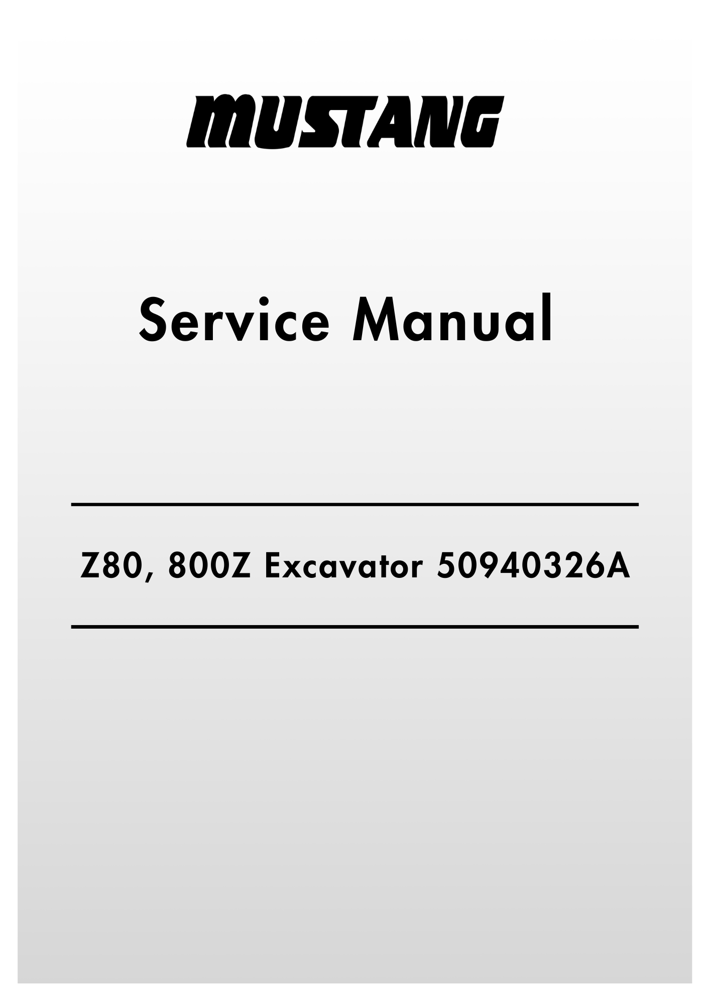MUSTANG Z80, 800Z Compact Excavator 50940326A Service Manual