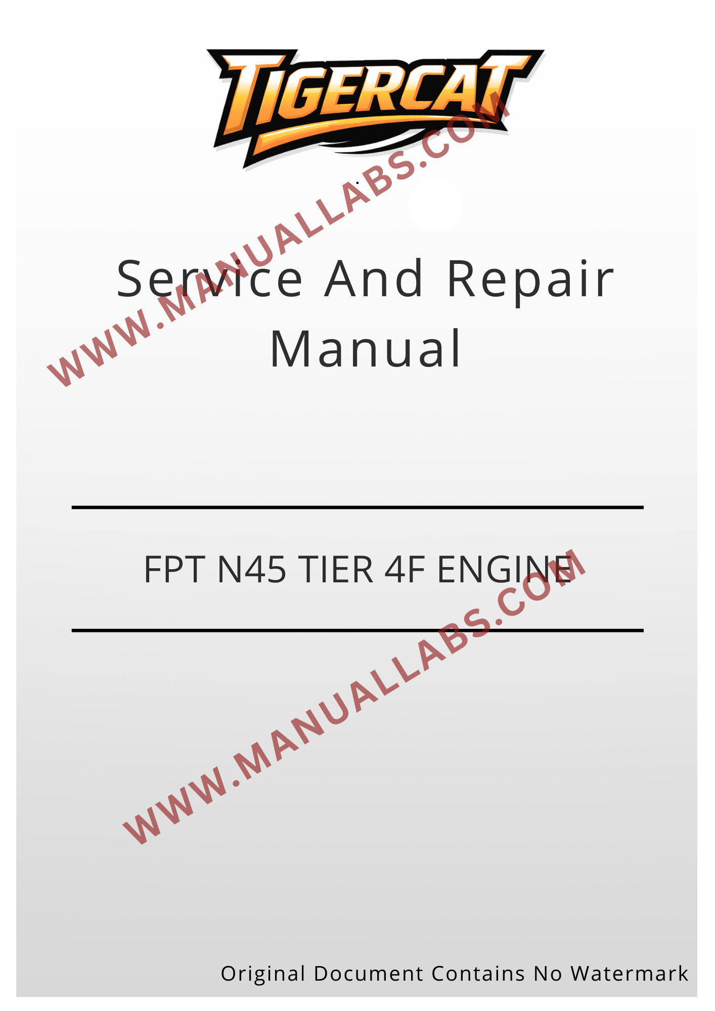 Discover the essential Tigercat FPT N45 Tier 4F Engine Service and Repair Manual (60216AENG), your go-to resource for maintaining optimal performance and longevity of your engine. This comprehensive manual provides detailed instructions, diagrams, and troubleshooting tips, ensuring you have everything you need for efficient service and repairs. With its user-friendly format, you can easily navigate through complex procedures, making it an invaluable tool for both professionals and DIY enthusiasts. Invest in this manual today to keep your Tigercat engine running smoothly and efficiently. www.manuallabs.com