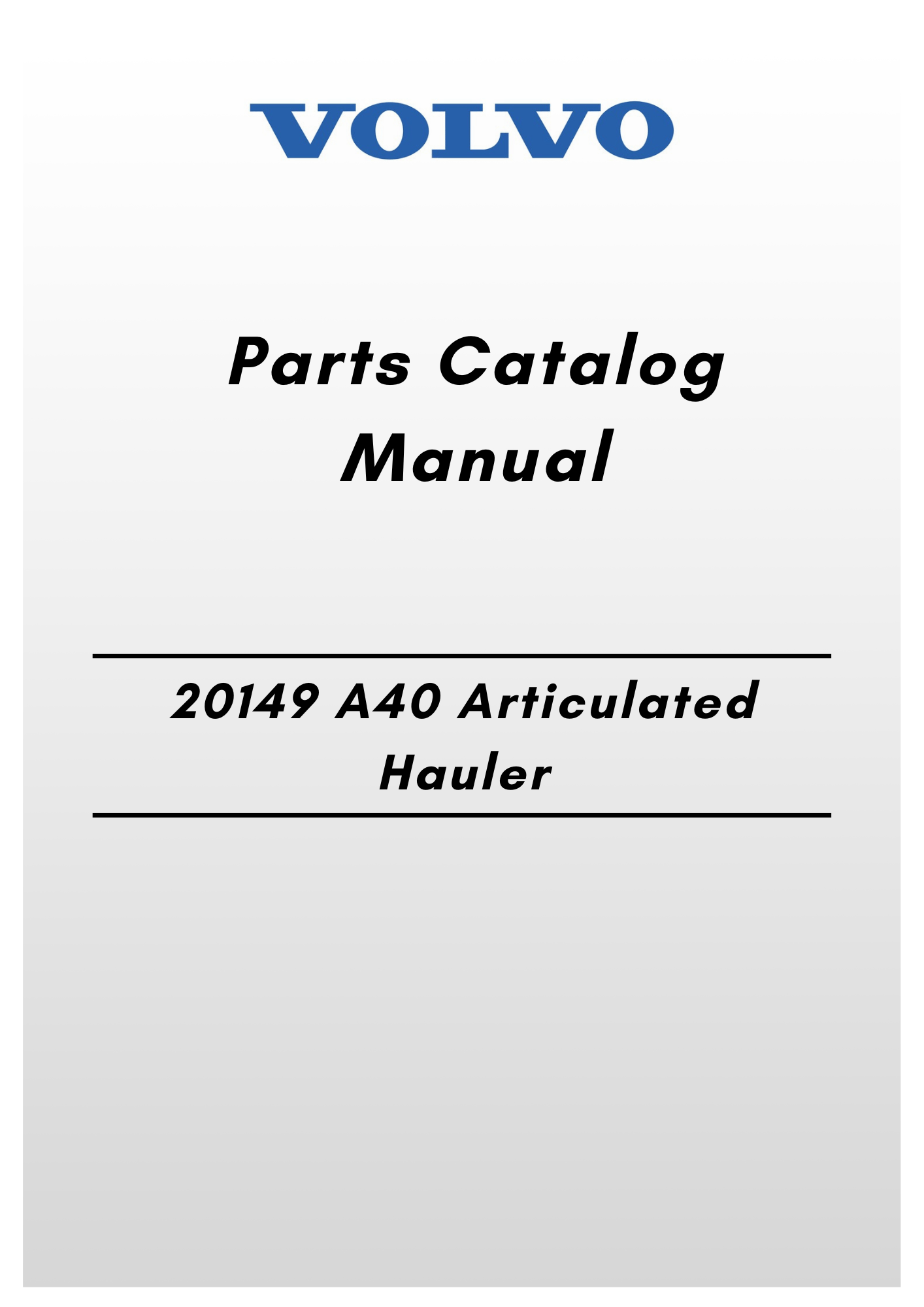 Volvo 20149 A40 Parts Catalog Articulated hauler manual