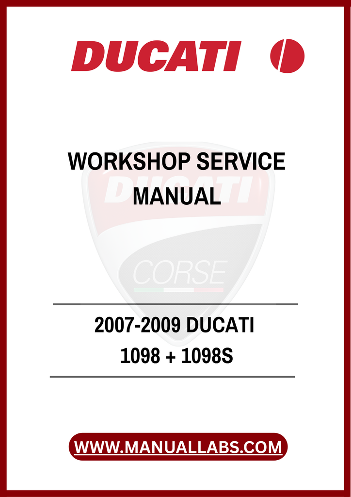 UNLOCK THE FULL POTENTIAL OF YOUR 2007-2009 DUCATI 1098 AND 1098S WITH OUR COMPREHENSIVE WORKSHOP SERVICE MANUAL IN PDF FORMAT. THIS ESSENTIAL GUIDE IS DESIGNED FOR BOTH SEASONED MECHANICS AND PASSIONATE DIY ENTHUSIASTS, PROVIDING DETAILED INSTRUCTIONS AND INSIGHTS TO KEEP YOUR MOTORCYCLE IN PEAK CONDITION.