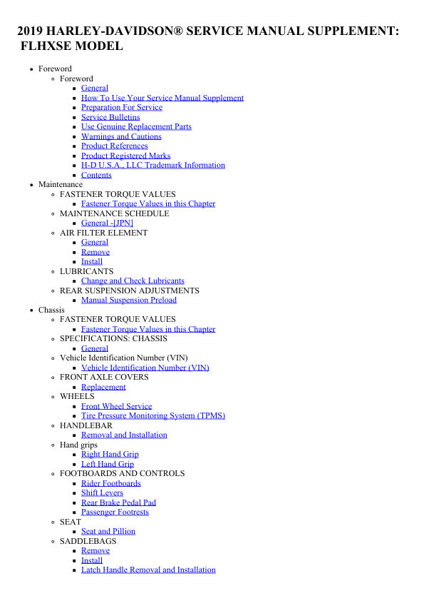 Unlock the full potential of your 2019 Harley-Davidson FLHXSE with our comprehensive Supplement Service Manual PDF file. This essential guide provides detailed instructions, diagrams, and troubleshooting tips to ensure your motorcycle runs smoothly and efficiently. Whether you're a seasoned mechanic or a passionate DIY enthusiast, this manual is your go to resource for maintenance and repairs, helping you keep your ride in top condition. Download now and take the first step towards mastering your Harley!
