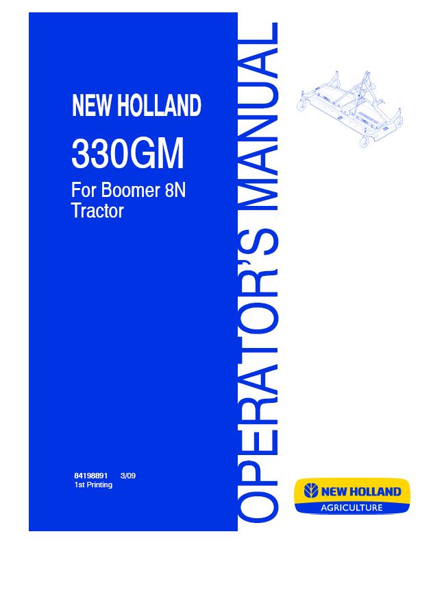 330GM For Boomer 8N Tractor-Finish Mower - New Holland Operator's Manual 84198891 Download PDF - Manual labs