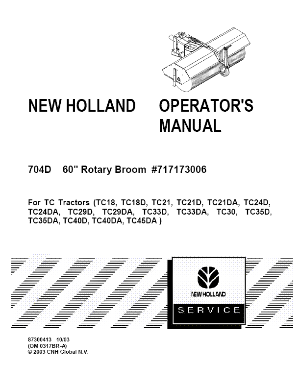 704D 60` Front Dozer Blade for TC tractors - New Holland Operator's Manual 87300413 Download PDF - Manual labs