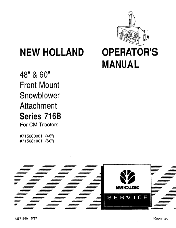 716B 48 60 Inch Snowblower Attach OM. for CM Tractors - New Holland Operator's Manual 42871660 Download PDF - Manual labs