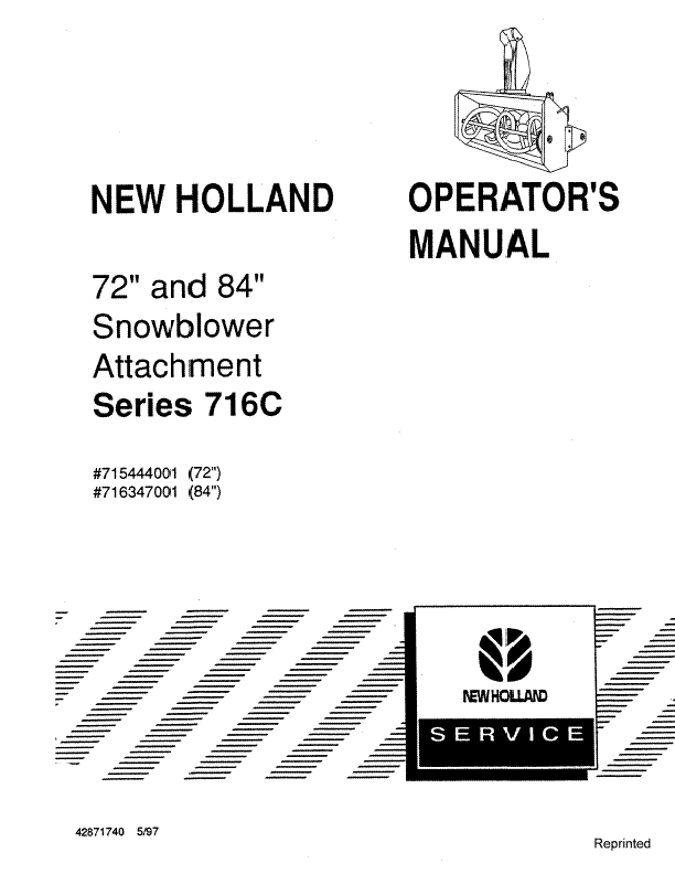 72 & 84 Inch For Series 716C Snowblwr Attachment - New Holland Operator's Manual 42871740 Download PDF - Manual labs