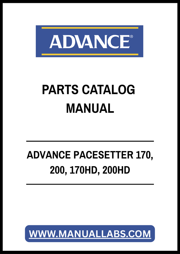 1. Discover the ultimate resource for your ADVANCE PACESETTER 170, 200, 170HD, and 200HD with our comprehensive Parts Catalog Manual in PDF format. This essential guide provides detailed diagrams and part numbers, ensuring you can easily identify and order the components you need to keep your equipment running smoothly.