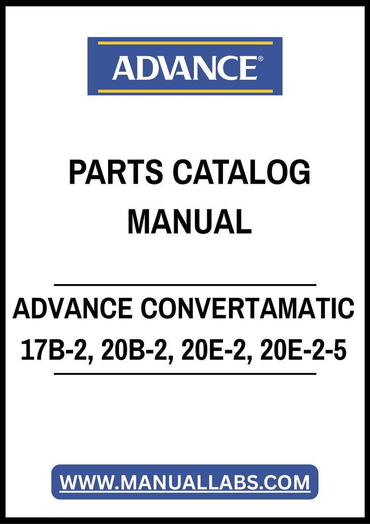 1. Discover the ultimate resource for your ADVANCE CONVERTAMATIC 17B-2, 20B-2, 20E-2, and 20E-2-5 models with our comprehensive Parts Catalog Manual. This PDF file is meticulously designed to provide you with detailed diagrams, part numbers, and specifications, ensuring you have everything you need for efficient maintenance and repairs.