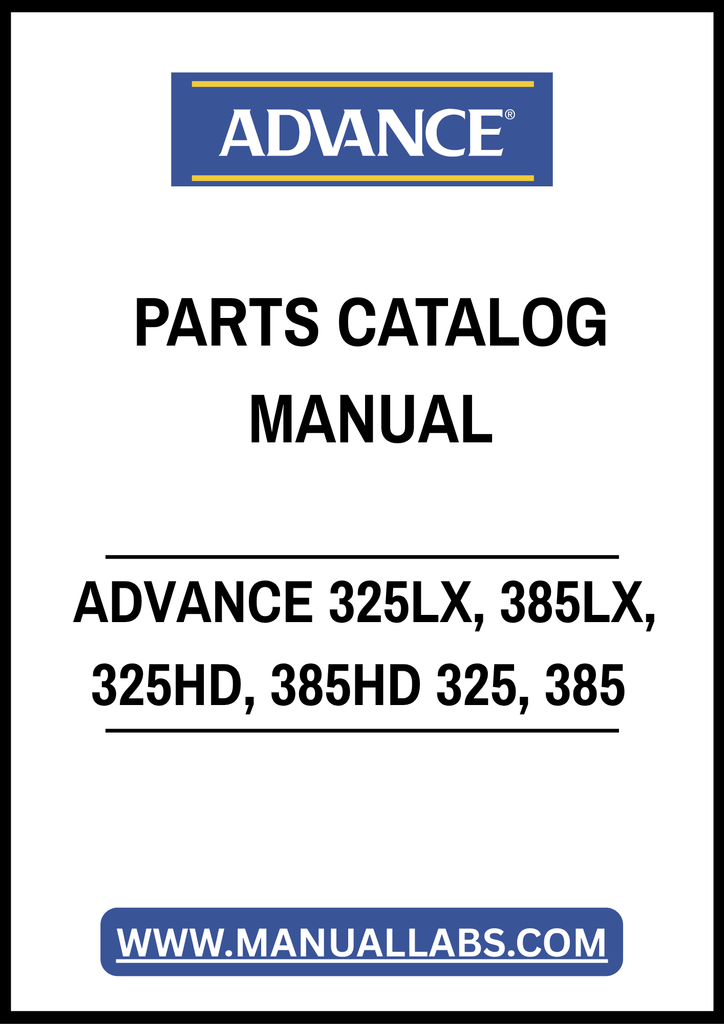 1. Discover the ultimate resource for your ADVANCE CONVERTAMATIC 325LX, 385LX, 325HD, and 385HD models with our comprehensive Parts Catalog Manual in PDF format. This essential guide provides detailed diagrams and part numbers, ensuring you can easily identify and order the components you need for maintenance and repairs.
