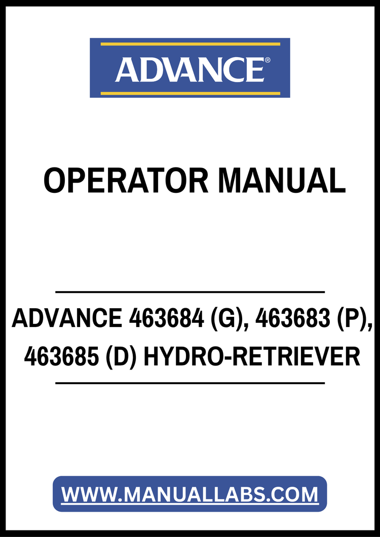 1. Enhance your operational efficiency with the 2067 ADVANCE Hydro-Retriever Operator Manual. This comprehensive PDF file is designed to provide you with all the essential information needed to effectively operate and maintain your Hydro-Retriever model 463684 (G), 463683 (P), and 463685 (D).