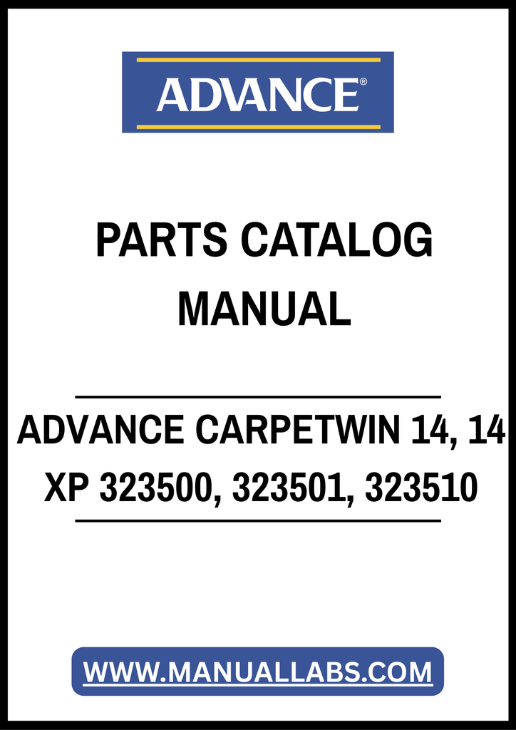 1. Discover the ultimate resource for maintaining your ADVANCE CARPETWIN 14, 14 XP models with our comprehensive Parts Catalog Manual. This PDF file is meticulously designed to provide you with detailed diagrams and part numbers, ensuring you can easily identify and order the components you need for optimal performance.