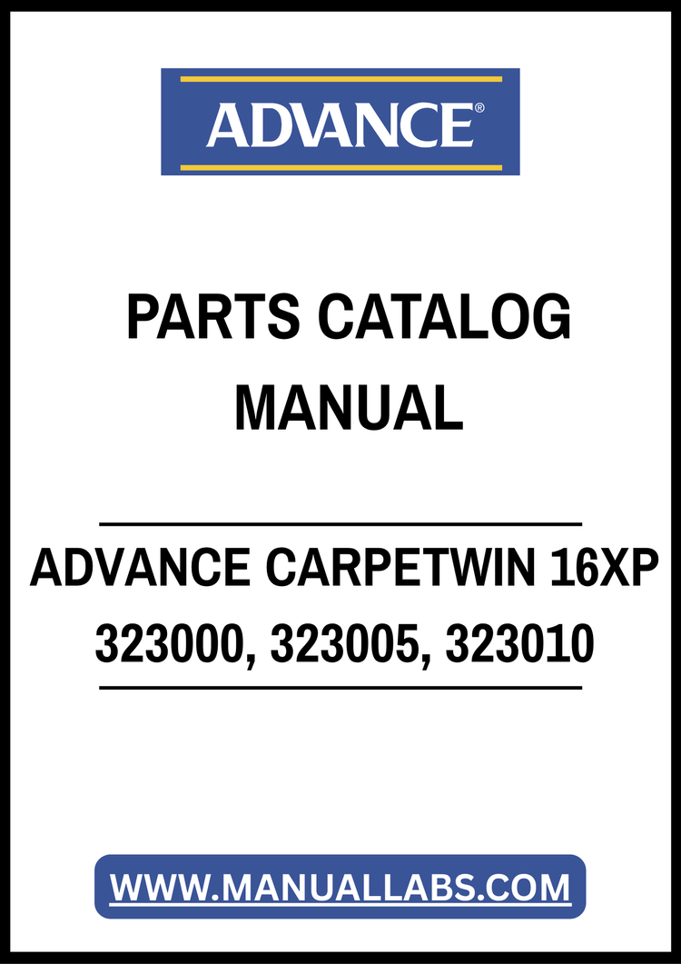 1. Discover the ultimate resource for maintaining your ADVANCE CARPETWIN 16XP with our comprehensive Parts Catalog Manual. This PDF file is meticulously designed to provide you with detailed diagrams and part numbers for models 323000, 323005, and 323010, ensuring you have everything you need at your fingertips.