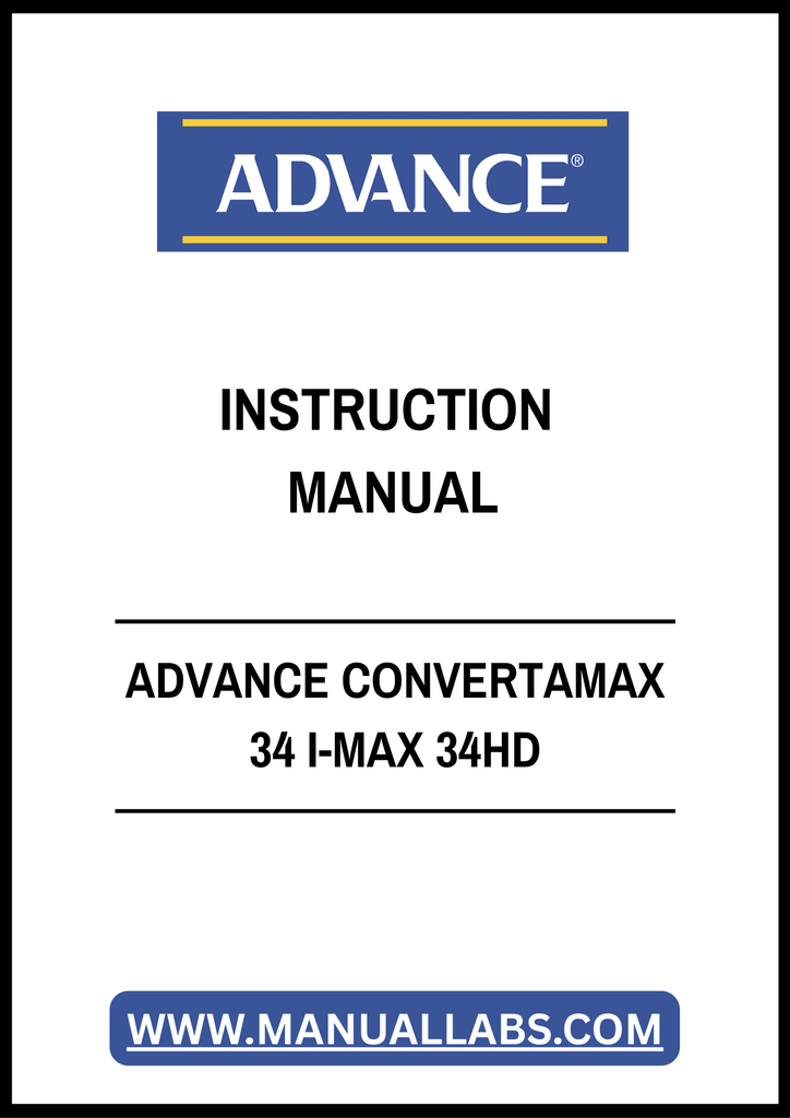 1. Discover the ultimate resource for your ADVANCE CONVERTAMAX 34 I-MAX 34HD with our comprehensive instruction manual available in PDF format. This digital guide is designed to provide you with all the essential information you need to operate and maintain your equipment efficiently.