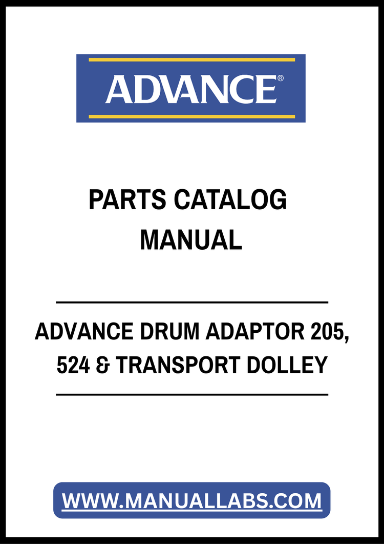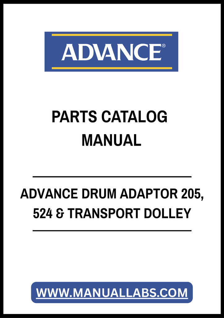 1. Discover the ultimate resource for your ADVANCE drum adaptor and transport dolley needs with our comprehensive Parts Catalog Manual. This PDF file is meticulously designed to provide you with detailed diagrams, part numbers, and specifications, ensuring you have everything you need for efficient maintenance and repairs.