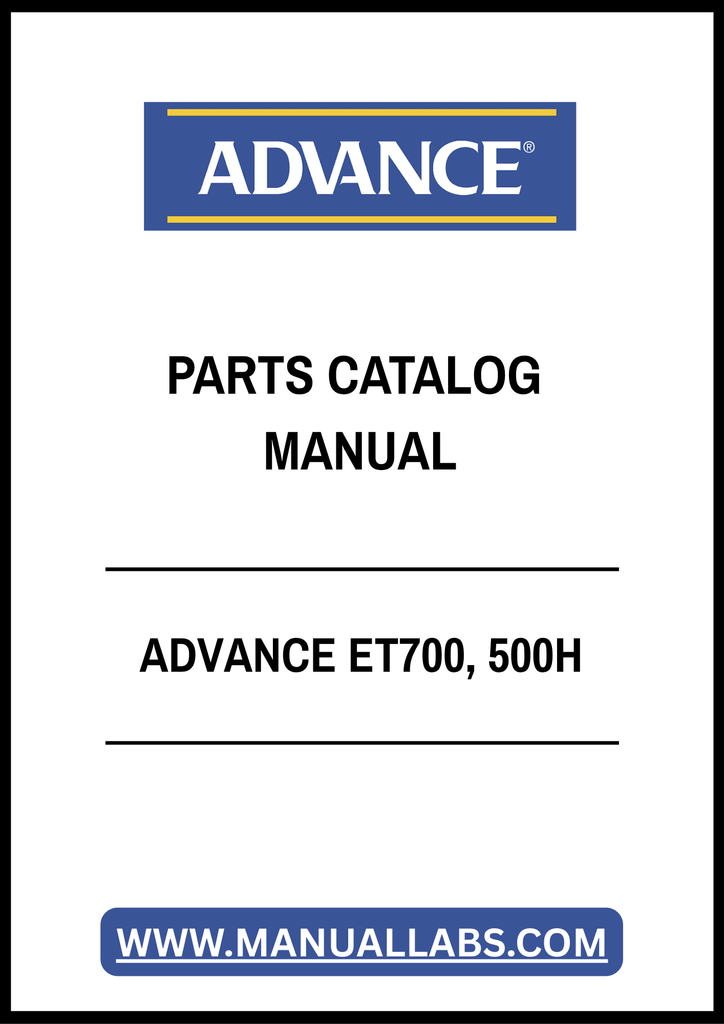 1. Discover the ADVANCE ET700, 500H Parts Catalog Manual, a comprehensive PDF resource designed for professionals and enthusiasts alike. This manual provides detailed diagrams and specifications for all parts, ensuring you have the information you need at your fingertips.