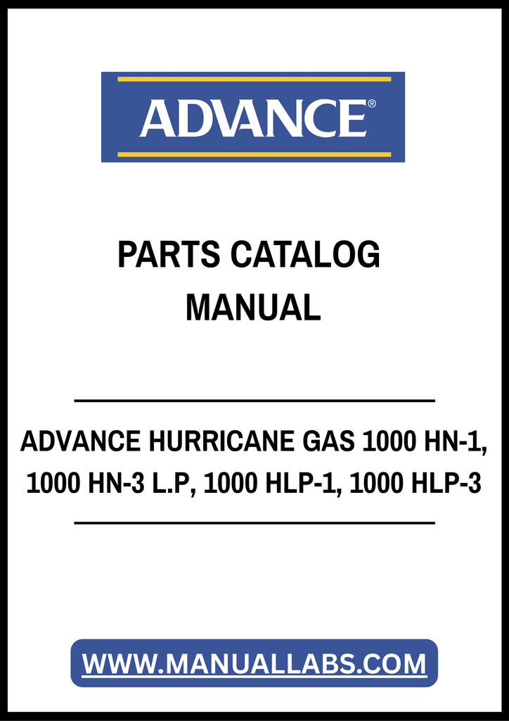 1. Discover the ultimate resource for your ADVANCE HURRICANE gas models with our comprehensive Parts Catalog Manual. This PDF file covers the 1000 HN-1, 1000 HN-3 L.P, 1000 HLP-1, and 1000 HLP-3, providing you with detailed diagrams and part numbers to streamline your maintenance and repair processes.
