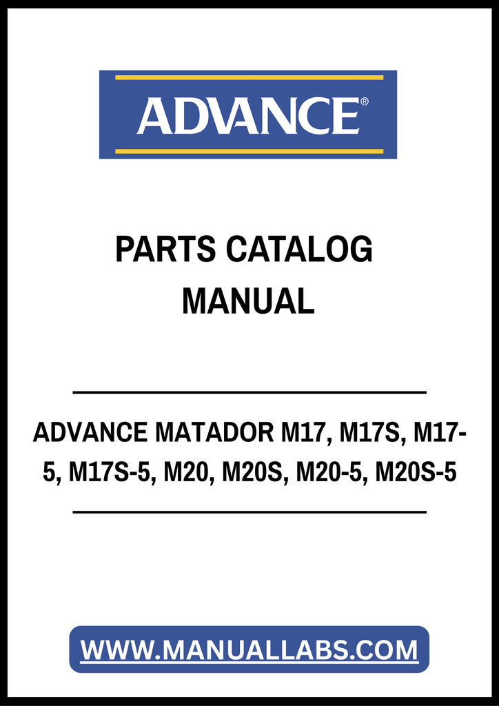 1. Discover the ultimate resource for your ADVANCE MATADOR equipment with the comprehensive Parts Catalog Manual. This PDF file covers models M17, M17S, M17-5, M17S-5, M20, M20S, M20-5, and M20S-5, providing you with detailed diagrams and part numbers to streamline your maintenance and repair processes.