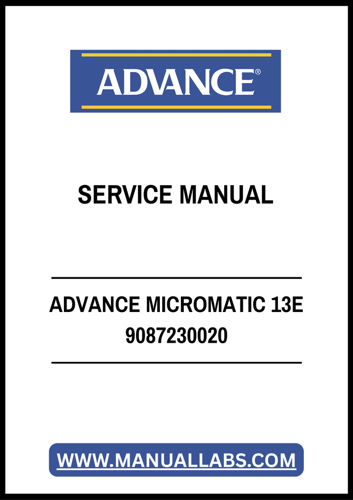 1. Unlock the full potential of your ADVANCE MICROMATIC 13E with the comprehensive service manual (PDF file) designed specifically for model 9087230020. This essential guide provides detailed insights into maintenance, troubleshooting, and repair procedures, ensuring your equipment operates at peak performance.