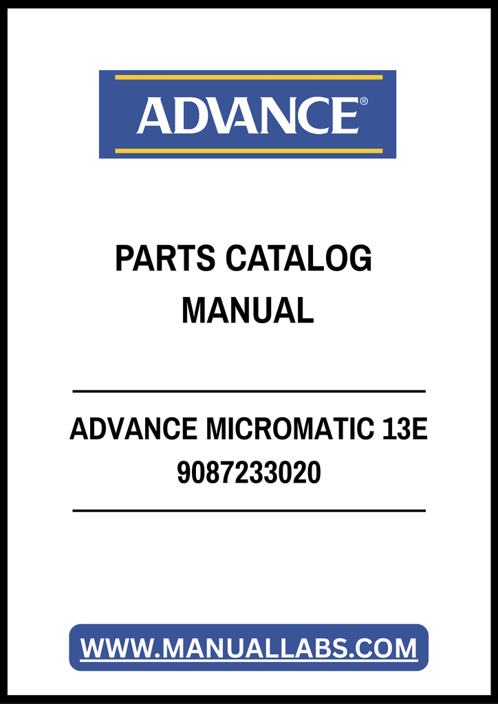 1. Discover the ultimate resource for your ADVANCE MICROMATIC 13E with the comprehensive Parts Catalog Manual (PDF file). This essential guide provides detailed diagrams and part numbers, ensuring you have everything you need for efficient maintenance and repairs.