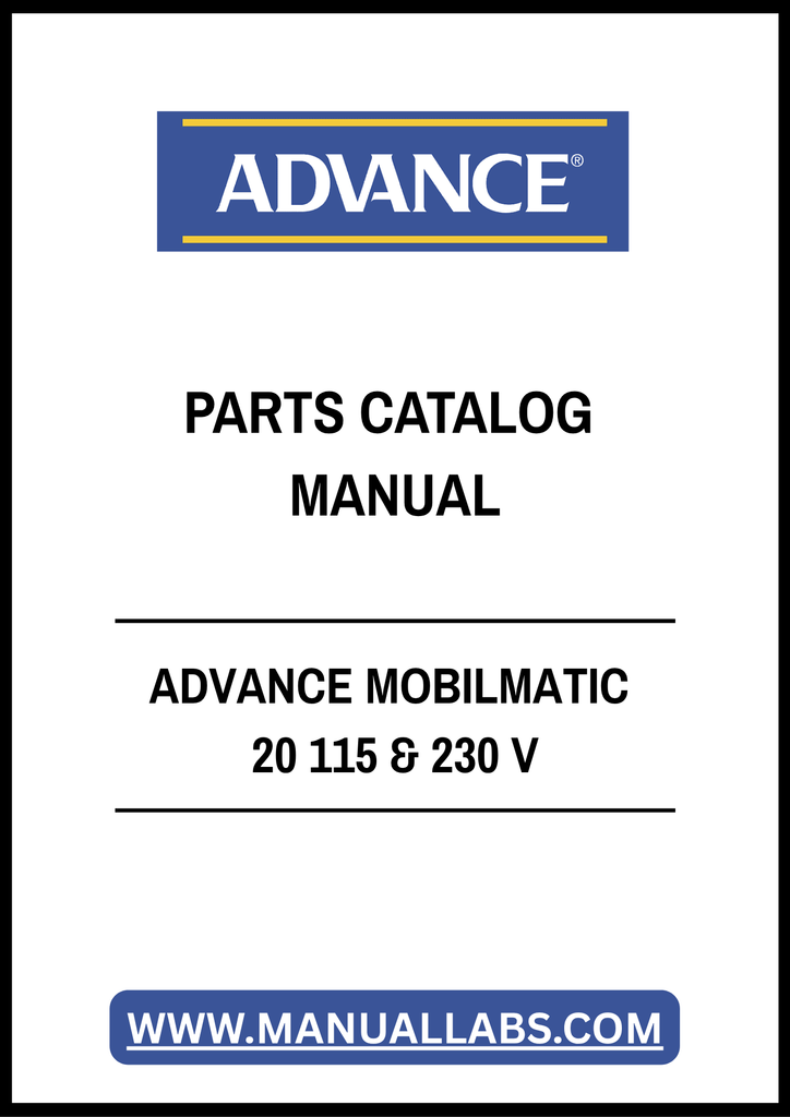 1. Discover the ADVANCE MOBILMATIC 20 Parts Catalog Manual, a comprehensive PDF resource designed for both professionals and enthusiasts. This manual provides detailed information on parts for both 115V and 230V models, ensuring you have everything you need at your fingertips for maintenance and repairs.