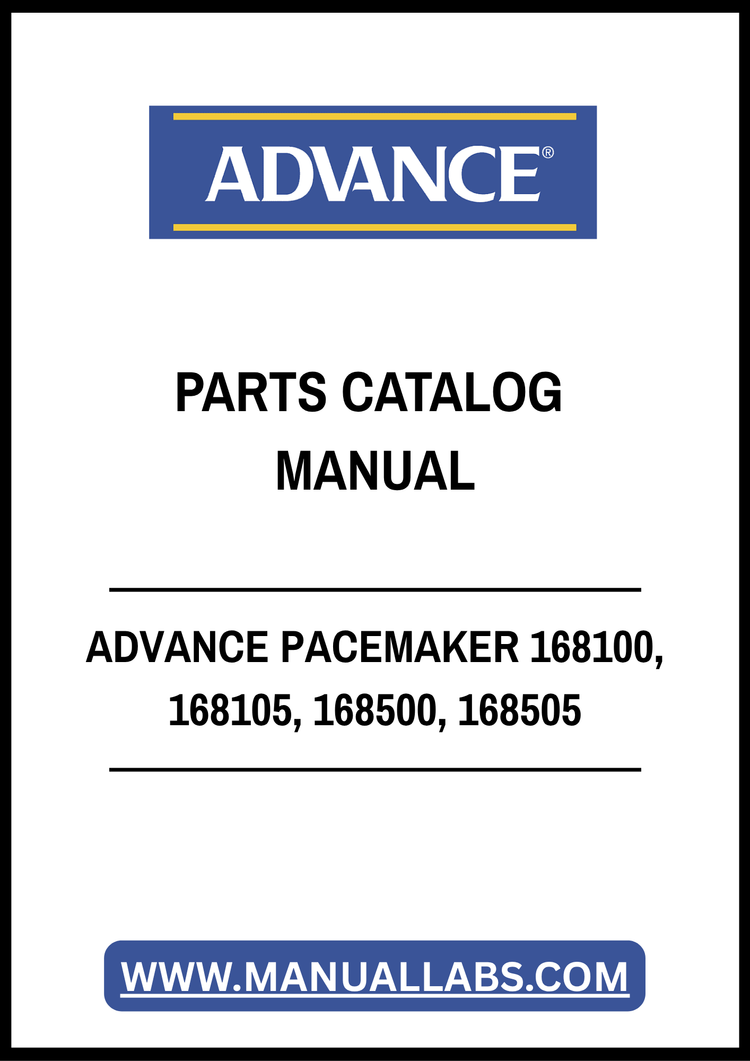 1. Discover the comprehensive ADVANCE PACEMAKER Parts Catalog Manual, designed specifically for models 168100, 168105, 168500, and 168505. This PDF file serves as an essential resource for technicians and DIY enthusiasts alike, providing detailed diagrams and part numbers to streamline your repair and maintenance processes.