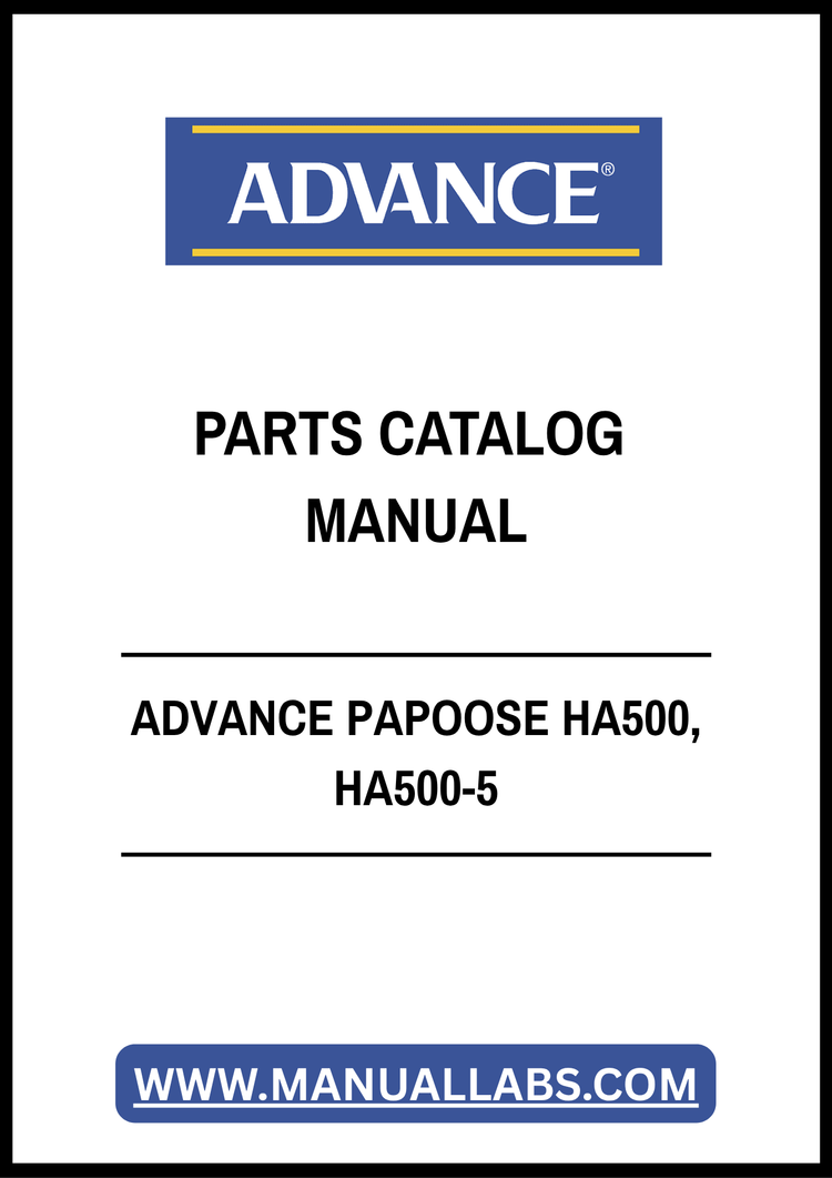 1. Discover the ADVANCE PAPOOSE HA500, HA500-5 Parts Catalog Manual, a comprehensive PDF resource designed for efficient maintenance and repair of your equipment. This manual provides detailed diagrams and part numbers, ensuring you can easily identify and order the necessary components for your machine.