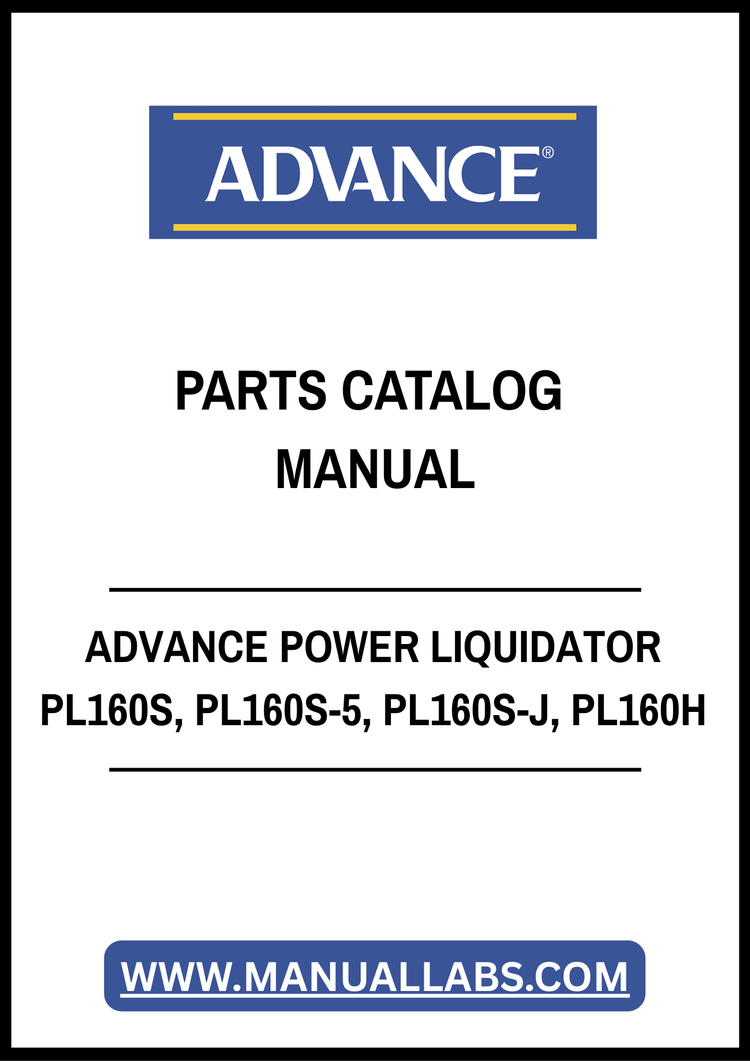 1. Discover the ultimate resource for your ADVANCE POWER LIQUIDATOR models PL160S, PL160S-5, PL160S-J, and PL160H with our comprehensive Parts Catalog Manual. This PDF file is meticulously designed to provide you with detailed diagrams and part numbers, ensuring you can easily identify and order the components you need for maintenance and repairs.