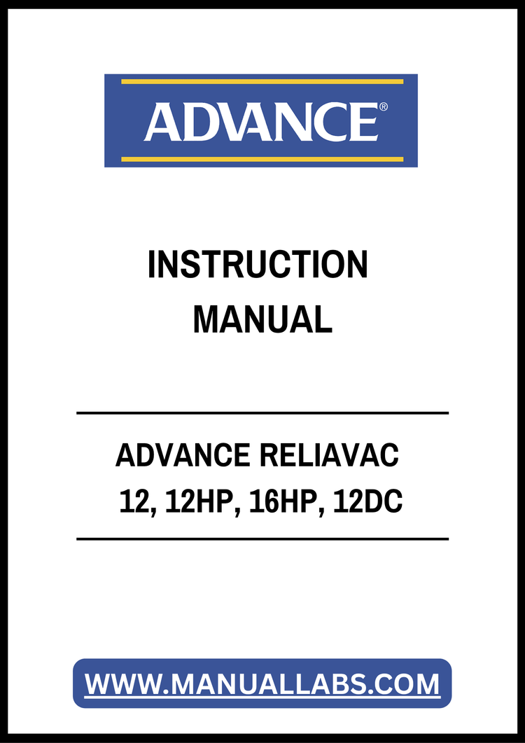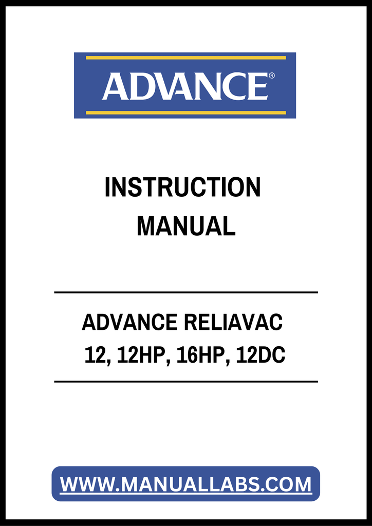 1. Discover the comprehensive ADVANCE RELIAVAC Instruction Manual, designed specifically for the 12HP, 16HP, and 12DC models. This PDF file serves as an essential resource for both new and experienced users, providing clear and detailed guidance on operation, maintenance, and troubleshooting.