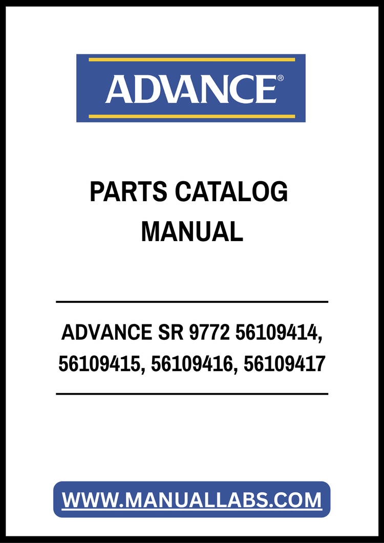 1. Discover the ADVANCE SR 9772 Parts Catalog Manual, your essential resource for maintaining and repairing your equipment. This comprehensive PDF file includes detailed diagrams and part numbers for models 56109414, 56109415, 56109416, and 56109417, ensuring you have all the information you need at your fingertips.