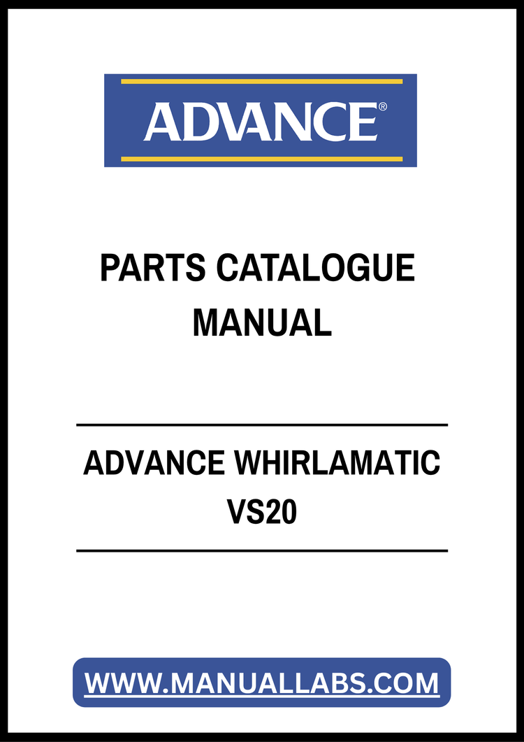 1. Discover the ultimate resource for your ADVANCE WHIRLAMATIC VS20 with our comprehensive Parts Catalogue Manual in PDF format. This meticulously organized guide provides detailed diagrams and part numbers, ensuring you can easily identify and order the components you need for maintenance or repairs.