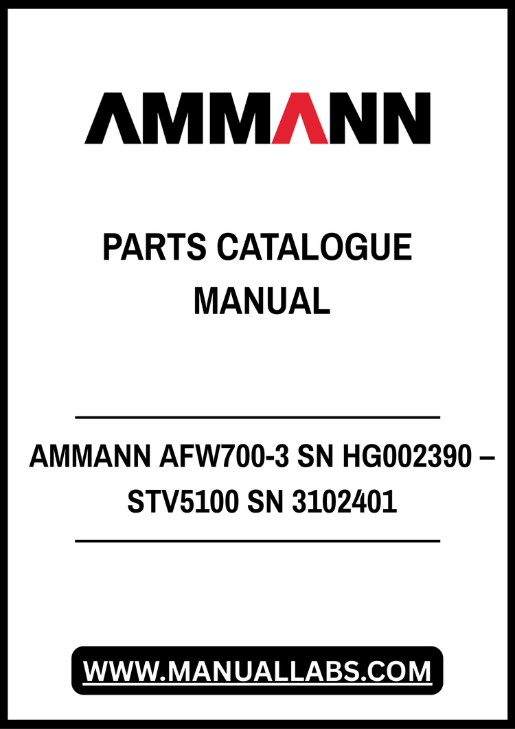 1. Discover the comprehensive AMMANN AFW700-3 and STV5100 Parts Catalogue Manual, designed specifically for your equipment needs. This PDF file serves as an essential resource, providing detailed diagrams and part numbers to ensure you can easily identify and order the correct components for your machinery.