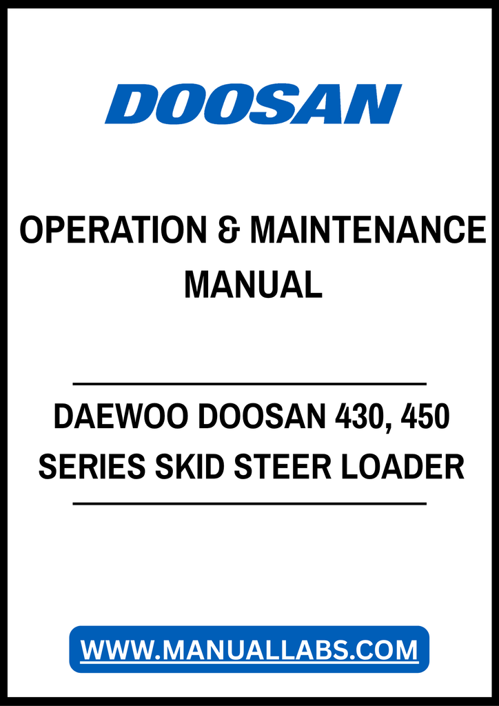 1. Discover the essential DAEWOO DOOSAN 430 and 450 Series Skid Steer Loader Operation & Maintenance Manual, now available in a convenient PDF format. This comprehensive guide is designed to enhance your understanding of your skid steer loader, ensuring optimal performance and longevity.