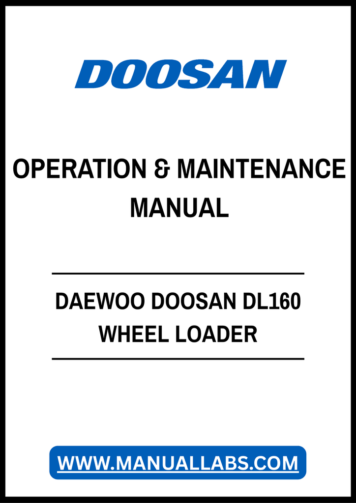 1. Enhance your operational efficiency with the DAEWOO DOOSAN DL160 Wheel Loader Operation & Maintenance Manual. This comprehensive PDF file is designed to provide you with essential insights and guidelines for the effective use and upkeep of your wheel loader, ensuring optimal performance and longevity.