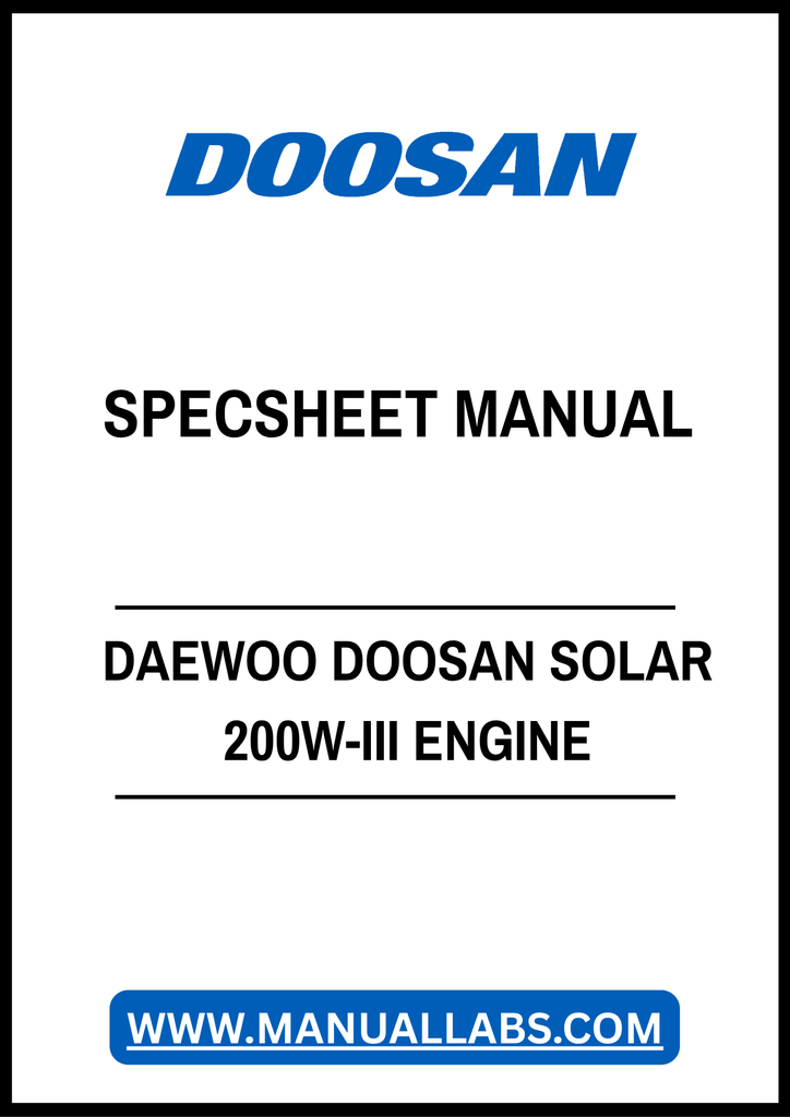 1. Discover the DAEWOO DOOSAN SOLAR 200W-III Engine Specsheet Manual, a comprehensive PDF resource designed for professionals and enthusiasts alike. This manual provides detailed specifications and insights into the performance and capabilities of the 200W-III engine, ensuring you have all the information you need at your fingertips.