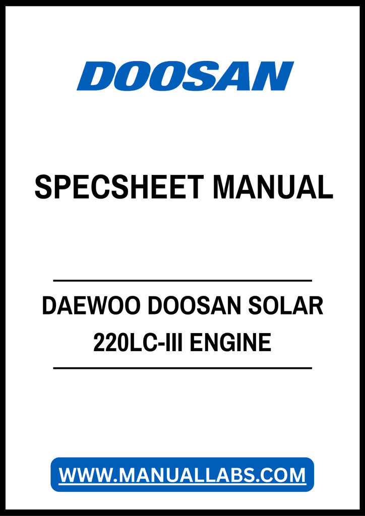 1. Discover the comprehensive DAEWOO DOOSAN SOLAR 220LC-III Engine Specsheet Manual, available in a convenient PDF format. This essential resource provides detailed specifications and insights into the powerful engine that drives the SOLAR 220LC-III, ensuring you have all the information you need at your fingertips.