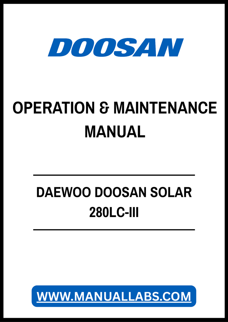 1. Discover the essential DAEWOO DOOSAN SOLAR 280LC-III Operation & Maintenance Manual, now available in a convenient PDF format. This comprehensive guide is designed to provide you with all the necessary information to operate and maintain your machinery efficiently, ensuring optimal performance and longevity.