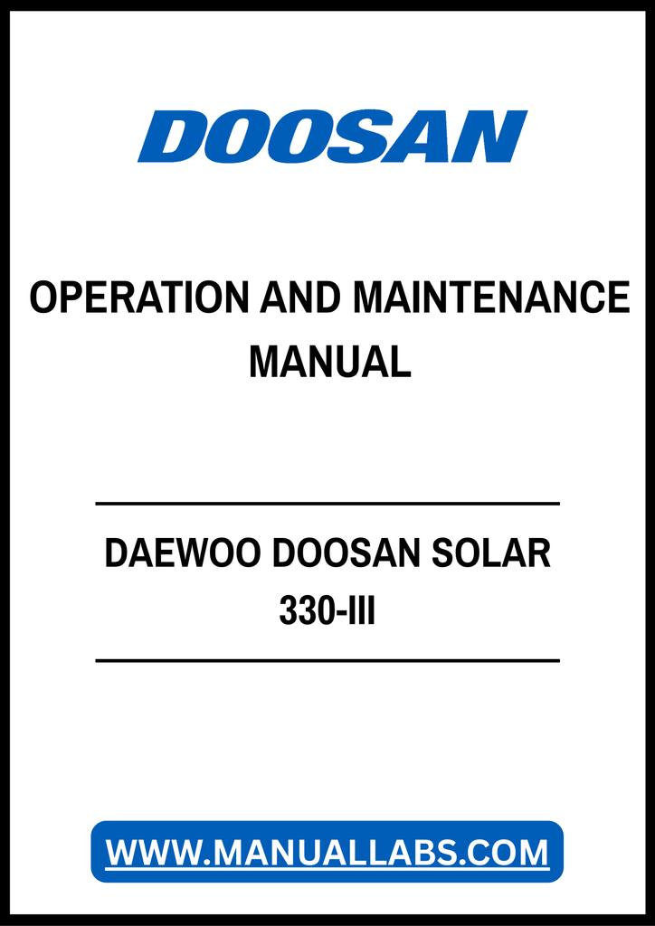 1. Enhance your operational efficiency with the DAEWOO DOOSAN SOLAR 330-III Operation and Maintenance Manual, available in a convenient PDF format. This comprehensive guide is designed to provide you with essential information for the effective management of your equipment, ensuring optimal performance and longevity.