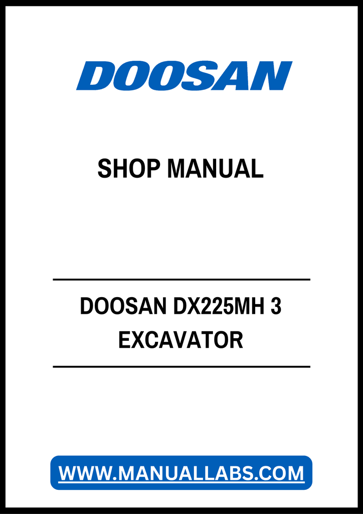 1. Unlock the full potential of your DOOSAN DX225MH 3 Excavator with our comprehensive Shop Manual in PDF format. This essential resource provides detailed insights into the machine's operation, maintenance, and troubleshooting, ensuring you can keep your excavator running smoothly and efficiently.