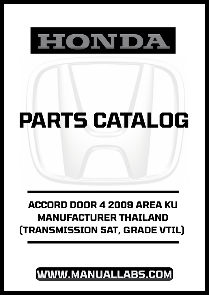 Discover the essential HONDA ACCORD DOOR 4 2009 AREA KU MANUFACTURER THAILAND PARTS CATALOG MANUAL, now available for instant PDF download. This comprehensive manual is specifically designed for the 2009 Honda Accord with a 5AT transmission and VTIL grade, ensuring you have all the information you need at your fingertips.