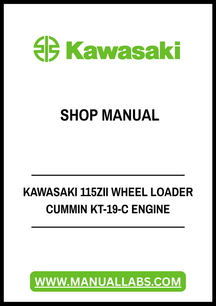 1. Unlock the full potential of your Kawasaki 115ZII Wheel Loader with our comprehensive shop manual, featuring the powerful Cummins KT-19-C engine. This PDF file is an essential resource for both seasoned mechanics and DIY enthusiasts, providing detailed insights into maintenance, troubleshooting, and repair procedures tailored specifically for your machine.